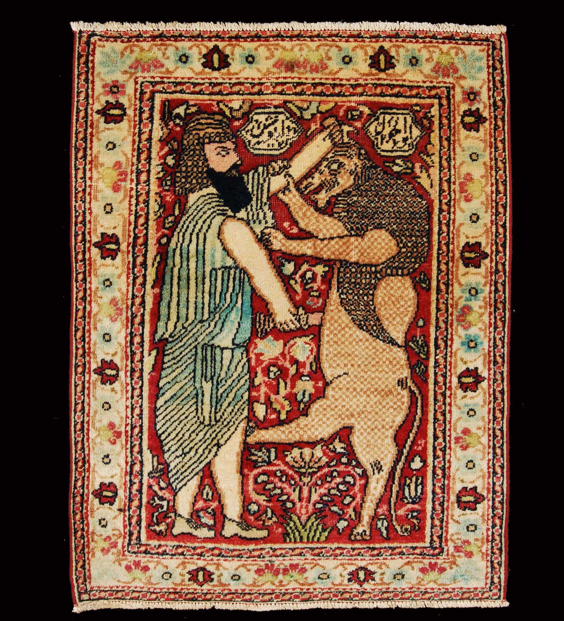 Authentic original hand knotted carpet 80x53 CM Kirman Ravar Lavar
